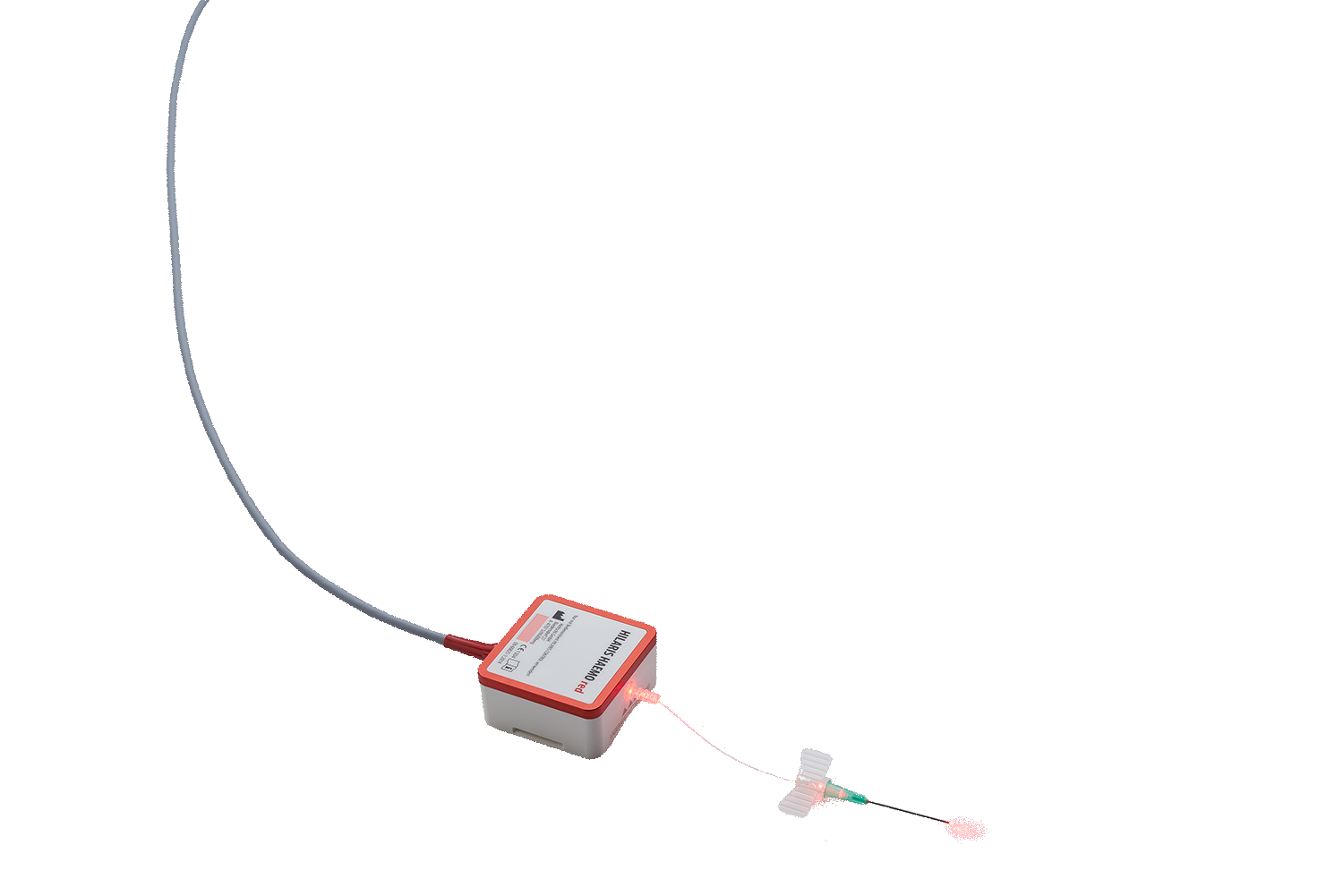 The fiber of the Haemo-Laser® disposable light guide can also be inserted into a suitable venous cannula.