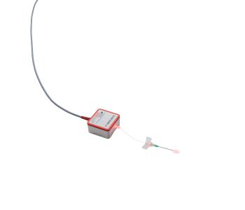 The Haemo-Laser® single-use optical waveguide is coupled over the Haemo-Laser® patient adapter on the patient’s forearm.